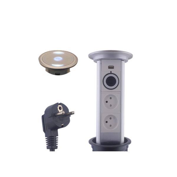 The FGGP HGZN-TS0006 Motorized Pop Up Socket can match Euro socket outlets (16a 250v max.), France & Belgium socket outlets (16a 250v max.), Australia & New Zealand socket outlets (10a 250v max.), United Kingdom BS1363A Shuttered socket outlets (13a 250v max.), International Multi socket outlets (13a 250v max.), Israel socket outlets (16a 250a max.), it also can be with a bluetooth audio and USB interface.